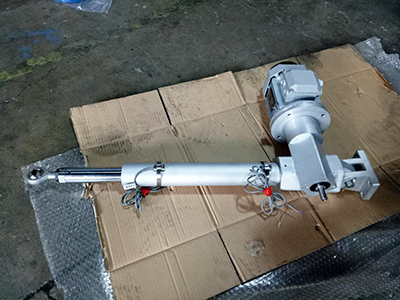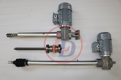 電動推杆又名(míng)直線驅動器(qì),其主(zhǔ)要組成部件有蝸輪蝸杆(gǎn)、梯形絲杆、伸縮管、防護(hù)管(guǎn)、頭部、端蓋以及其(qí)他零部件組成(chéng),電(diàn)機通過蝸輪蝸杆減速後,帶(dài)動絲杆螺母副,把電機的旋轉(zhuǎn)運動(dòng)轉變為直線運(yùn)動,利用電動機(jī)正反轉實現推杆往複動作,輸出推拉力相等。
