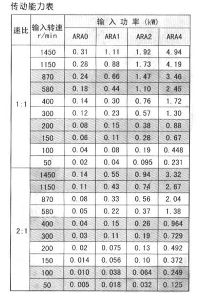 ARA螺旋傘齒輪轉向器(qì)技術參數