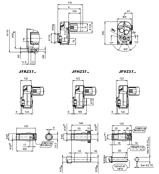 外形安裝尺寸(F37、FA37B、FH37B、FV37B、FF37、FAF37B、FHF37B、FVF37B、F..37/G、FA37、FH37、FV37、FAZ37、FHZ37、HVZ37)