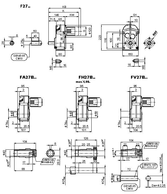 外(wài)形安裝尺寸(F27、FA27B、FH27B、FV27B、FF27、FAF27B、FHF27B、FVF27B、F..27/G、FA27、FH27、FV27、FAZ27、FHZ27、FVZ27)