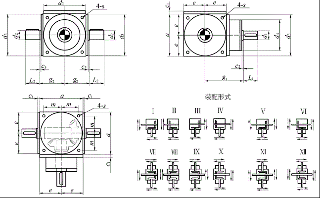 注:d2可作為輸入端,此(cǐ)時,SPS型轉向箱在許用速度範圍內可作換向傳動 |