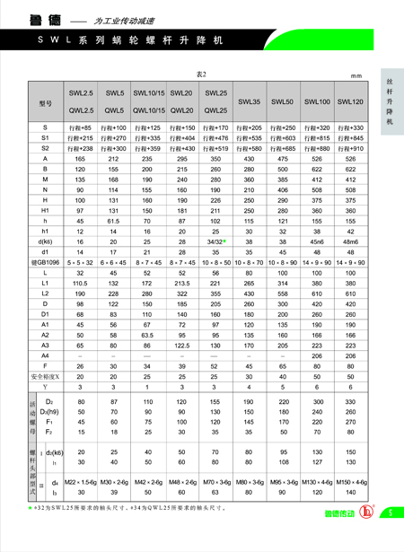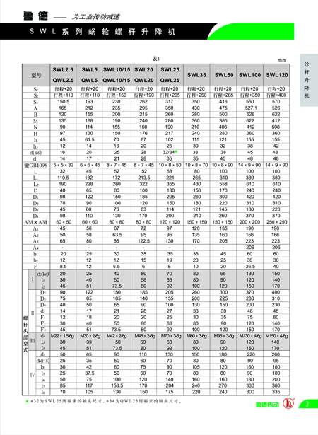 SWL係列蝸輪(lún)螺杆升降(jiàng)機,蝸輪絲杆升降機有不同的結構型式和裝配方式,提升高度可按要求(qiú)加工製造。請(qǐng)根據(jù)實際使用(yòng)負(fù)荷、螺杆行程和起升速度選擇(zé)合適的絲杆升降機。