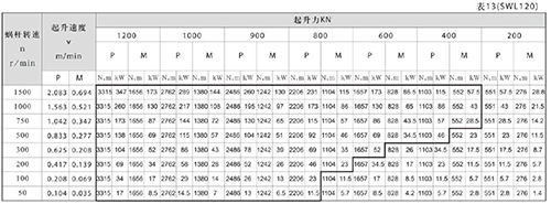 第三步:查表6,蝸杆在500r/min,起升速度為0.583m/min,起升負荷為20KN時,許用功率為0.9KW,滿足要求,應選擇SWL5型