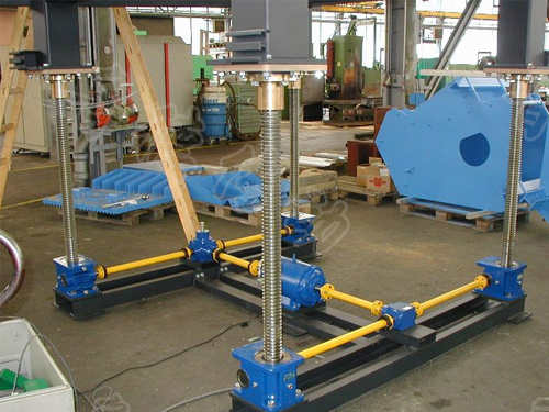 絲杆升降機應用場合廣泛,多種裝配型式安裝方式選型方便,可單(dān)台實現(xiàn)頂(dǐng)升、推拉、翻轉等功能,也可多台組合實現(xiàn)同時升(shēng)降、同一(yī)方向旋轉的工作平台,載重量有0.5噸到幾百噸可選,升降高度可根據用戶的使用方便加工定(dìng)做。加工材料選用國標9-4銅蝸杆材質為40Cr,絲杆一般采用45#鋼,對於一些潮濕具有腐蝕的特殊環境也可以(yǐ)采用(yòng)不鏽鋼材質加工。