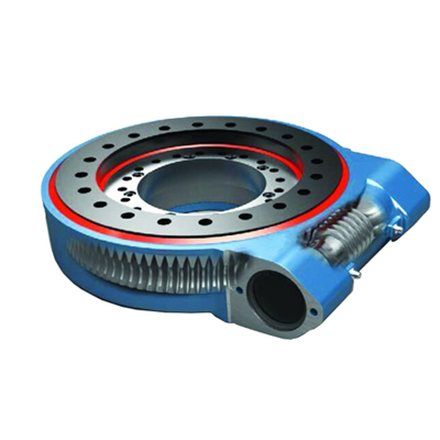 WE重載圍欄式回轉減速機為蝸輪蝸杆傳動,具有自鎖性能。回轉減速機具有介於靜態自(zì)鎖和動態自鎖直接的特征,當啟動效率ηA≤0.5時,靜態自鎖_存在了,此(cǐ)時不能通過旋轉回轉支承來驅動蝸杆(gǎn);當運行(háng)機械效率η≤0.5時,螺旋角ym=2.5°-4°時可以達到動態自鎖,即在運動時自動鎖定,此時(shí)依(yī)靠齒麵的接觸應力及摩擦(cā)力可(kě)以達到這一(yī)點。