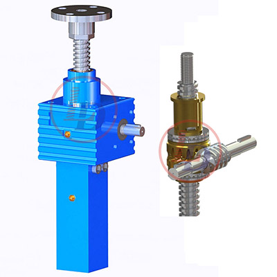 說起(qǐ)安全(quán)螺(luó)母,可能大多數人不知道,在國外, 都會有安全螺(luó)母,而國(guó)內的產品,因造價或者安裝空間(jiān)的原因,都沒有設計這一裝置,但是安全螺母是非(fēi)常(cháng)必要的一個部(bù)件。它的原理(lǐ)很簡單:絲杆上下(xià)運動時,如果稍微有點側(cè)向力,便會(huì)使得絲杆和蝸輪的內螺紋有較大的摩擦(cā),久而久之內螺紋會被磨壞,絲杆會從中脫落(luò),絲杆上的設備也會因此落下,而(ér)在絲杆上端再(zài)套一個(gè)螺紋連接的螺(luó)母,可避免這一事(shì)故發生,蝸輪(lún)內螺(luó)紋損壞,絲杆(gǎn)也不會因此掉下來,利益不受損(sǔn)失,也不會傷到人(rén)員。這樣一舉兩得的裝置,大家都可以考慮加上。成(chéng)本上並(bìng)沒有高(gāo)很多,為您帶來的安全性卻是百分百。