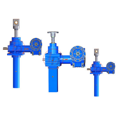 減速器升降速度等於蝸(wō)杆輸入轉速除以蝸輪(lún)蝸杆的(de)減速比,然後乘以升降(jiàng)絲杆的螺距。由於其結構的原(yuán)因,這種絲杆升降機(jī)一般采用潤滑脂潤滑,部(bù)分係列有采用潤滑油潤滑,要比潤滑脂潤滑的係(xì)列更具有壽命長、工作穩定的優點(diǎn)。