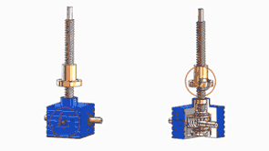的原理為蝸杆驅動蝸輪旋轉,蝸輪中間為內螺紋孔機構(與絲(sī)杠相齧合),再將旋轉(zhuǎn)運動傳遞至絲杠上下直線運動。