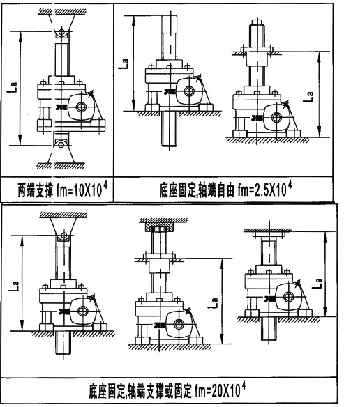 n1--輸(shū)入軸回轉轉速(r/min) fn--支撐係(xì)數(詳(xiáng)見(jiàn)附表6) Lb--支撐間距離(mm)