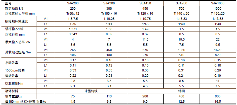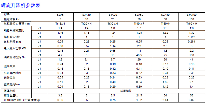 絲杆升降機_輸入(rù)轉速為1800rpm,正常工作狀態下的輸入功率不能_過_輸入功率,輸入功率KW=(滿載扭矩Nm×負載率×輸入轉速rpm)/9550;行程大於300mm時,應核對穩定性。